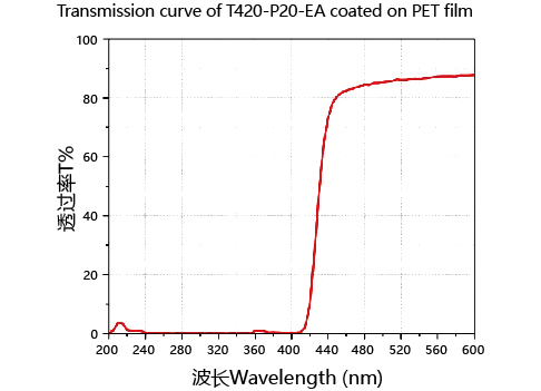 Example formulation:T420-P20-EA : Diluent:Adhesive (40% solid content) = 0.5:4:4 (by weight). Mix uniformly, coat to a dry film thickness of 8–10 μm. Blocking efficiency against 200~420 nm light reaches over 99%.